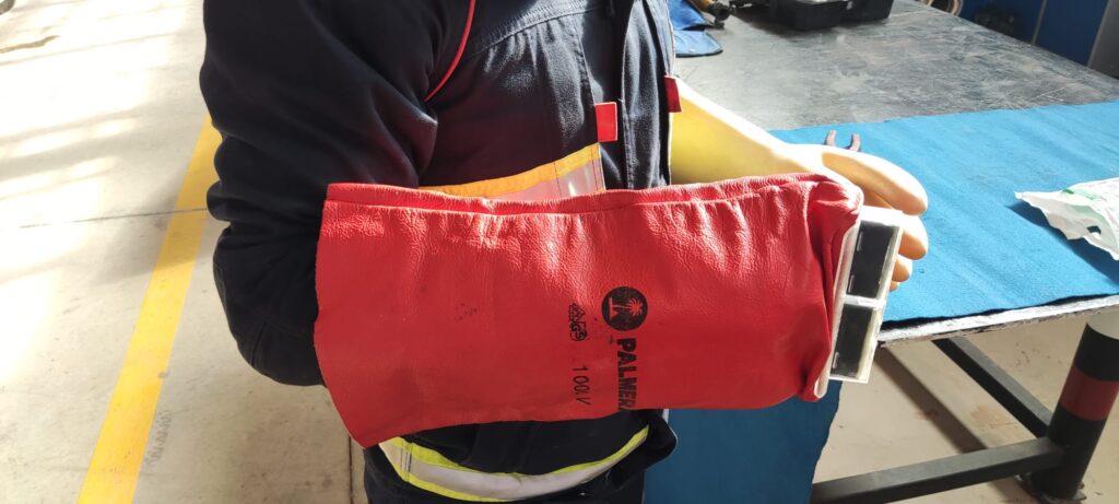 1.2 Guantes dieléctricos colocados encima de los guantes de trabajo.